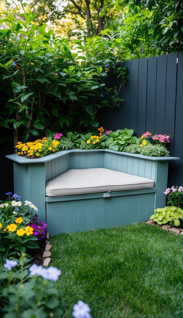 Incorporating a garden bench is an easy way to add some seating to your garden. Plus, it gives you the perfect excuse to add some color to your space.