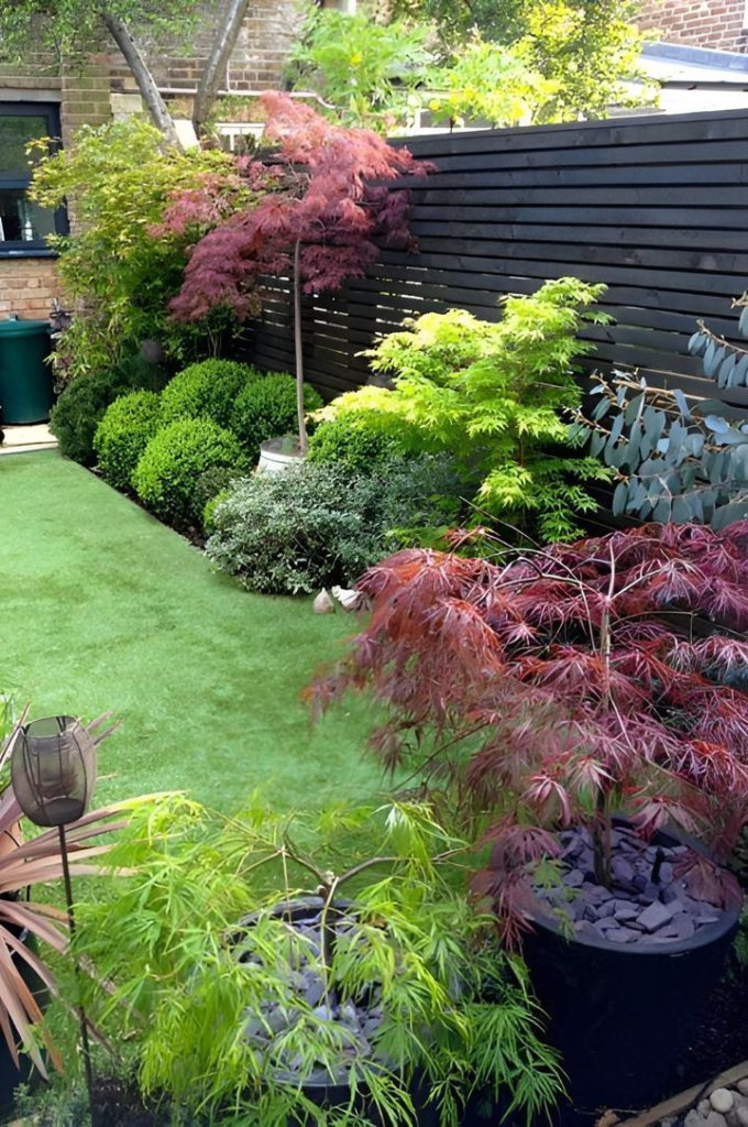 A well-placed focal point can make a big impact in a small garden. Here, a garden mirror is used to reflect the surrounding greenery, making the space feel larger and more lush.