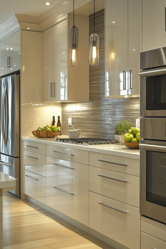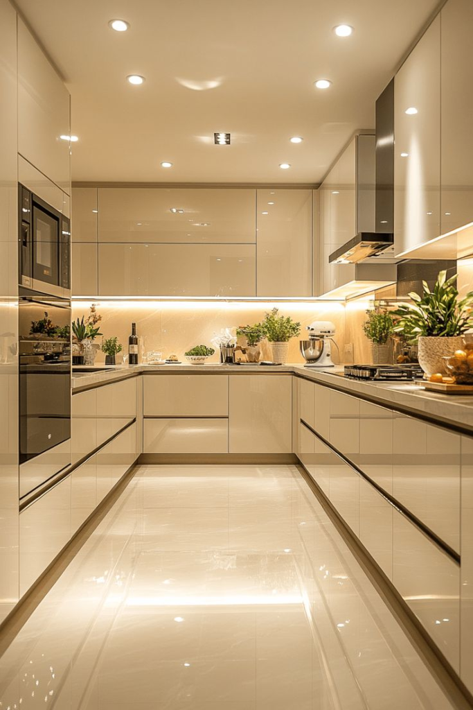 19. Cream Kitchen Cabinets with a High Gloss Finish