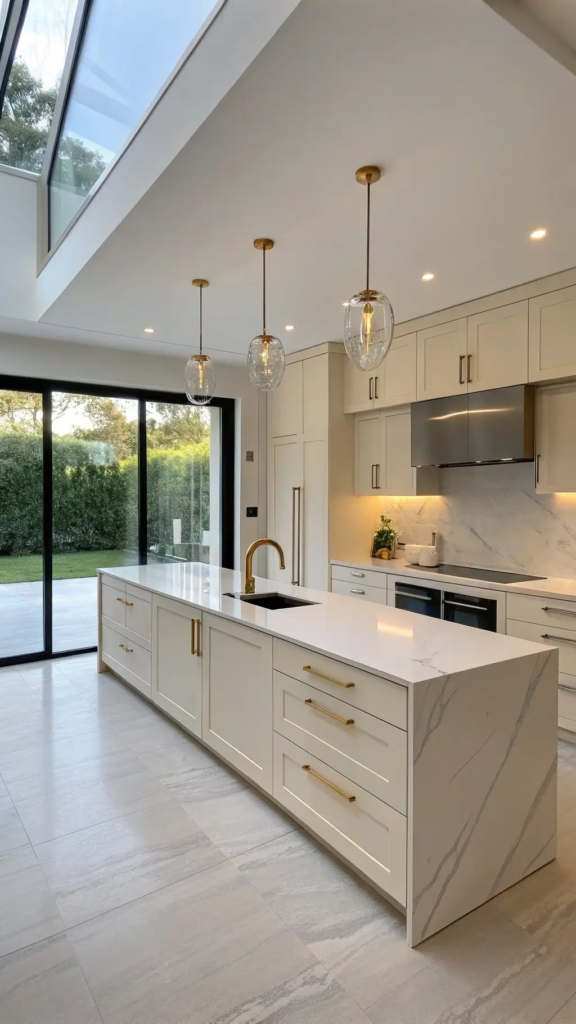 13. Cream Cabinets with a White Island