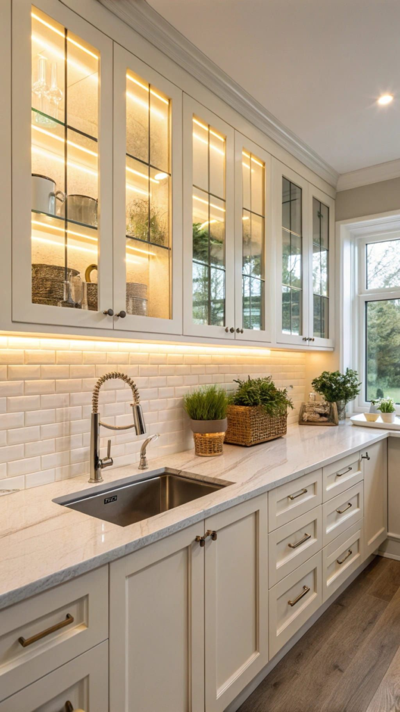 15. Cream Cabinets with Glass Doors