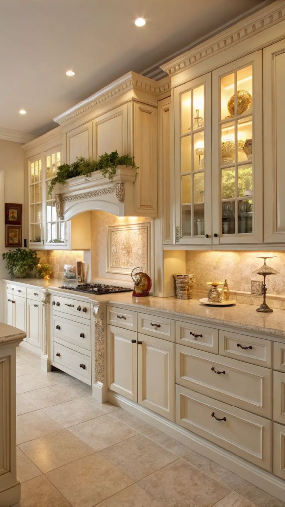 4. Cream Kitchen Cabinets with a Glaze